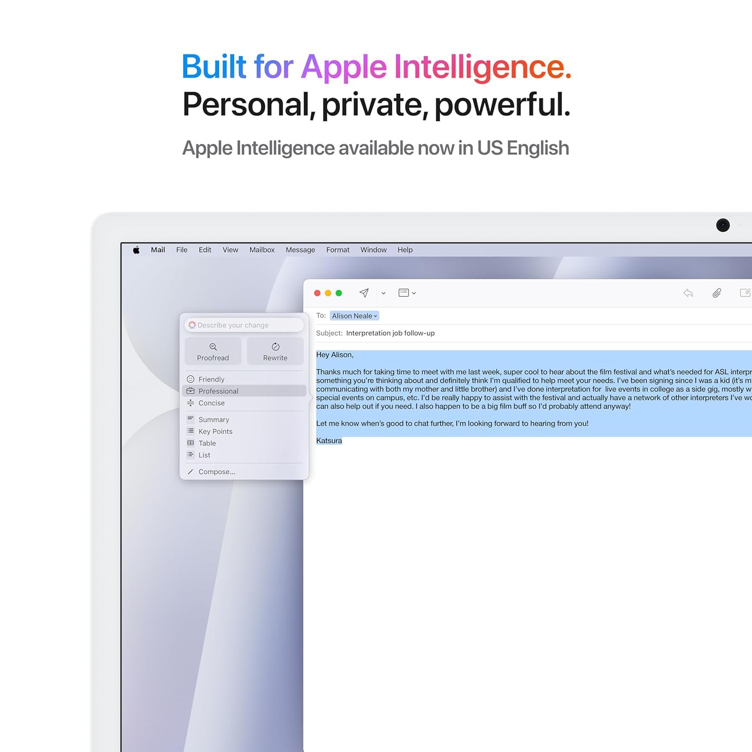 BUILT FOR APPLE INTELLIGENCE — Apple Intelligence is the personal intelligence system that helps you write, express yourself and get things done effortlessly. With groundbreaking privacy protections, it gives you peace of mind that no one else can access your data — not even Apple.
